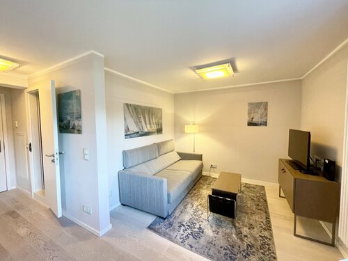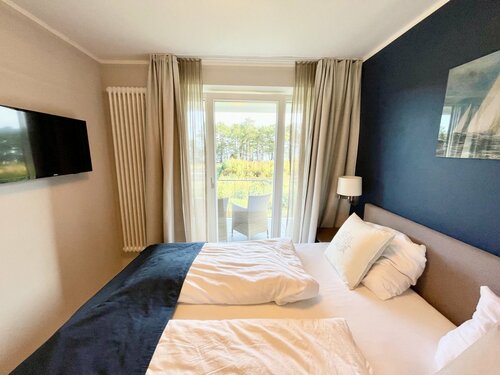 - 1 Schlafzimmer mit Meerblick, Doppelbett (180x200), ausreichend Platz für Ihre Garderobe und Flachbild-TV